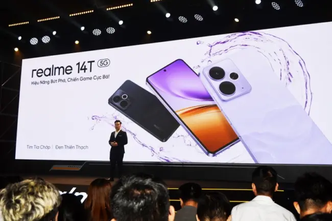 Bộ đôi smartphone chơi game phân khúc thị trường tầm trung realme 14T 5G và realme 14 5G đã được realme ra mắt ở Việt Nam trong sự kiện “Hiệu năng bứt phá, Chiến game cực bá” tổ chức tại TP.HCM chiều 24-4-2025. Cả hai có pin Titan dung lượng “khủng” 6.000mAh hỗ trợ sạc nhanh 45w. Riêng realme 14 5G là mẫu điện thoại đầu tiên trên thế giới được trang bị vi xử lý Snapdragon 6 Gen 4 (4nm). realme Việt Nam gọi đây là bộ đôi “Bậc thầy Chiến game”.
