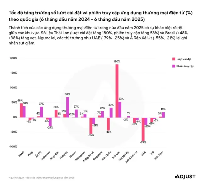 Adjust Việt Nam ngày 18-8-2025 cho biết: Adjust, công ty đo lường và phân tích dữ liệu quốc tế có trụ sở ở Đức, đã công bố Báo cáo Thị trường Ứng dụng Mua sắm 2025 (The shopping app insights report: 2025 edition), ghi nhận sự chuyển dịch chiến lược trong cách các thương hiệu tại khu vực Châu Á – Thái Bình Dương (APAC) và trên toàn cầu tiếp cận hoạt động thu hút người dùng (User Acquisition – UA). Với sự hỗ trợ của trí tuệ nhân tạo (AI) và các phương pháp tiếp cận khách hàng thông minh hơn, các ứng dụng mua sắm đang chuyển từ chiến lược mở rộng quy mô sang ưu tiên thu hút người dùng chất lượng cao và có mức độ tương tác cao hơn.