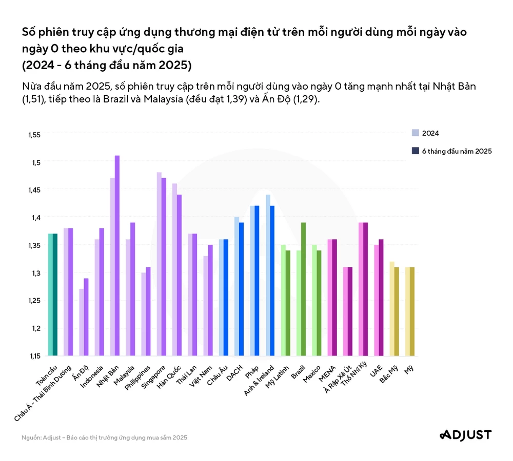Adjust Việt Nam ngày 18-8-2025 cho biết: Adjust, công ty đo lường và phân tích dữ liệu quốc tế có trụ sở ở Đức, đã công bố Báo cáo Thị trường Ứng dụng Mua sắm 2025 (The shopping app insights report: 2025 edition), ghi nhận sự chuyển dịch chiến lược trong cách các thương hiệu tại khu vực Châu Á – Thái Bình Dương (APAC) và trên toàn cầu tiếp cận hoạt động thu hút người dùng (User Acquisition – UA). Với sự hỗ trợ của trí tuệ nhân tạo (AI) và các phương pháp tiếp cận khách hàng thông minh hơn, các ứng dụng mua sắm đang chuyển từ chiến lược mở rộng quy mô sang ưu tiên thu hút người dùng chất lượng cao và có mức độ tương tác cao hơn.