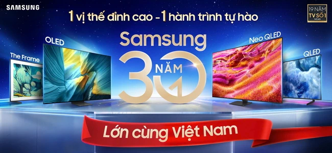 Như một lời tri ân người tiêu dùng và đối tác, Samsung Việt Nam đã triển khai chuỗi ưu đãi đặc biệt nhân dịp kỷ niệm 30 năm chính thức hoạt động tại Việt Nam. Từ nay đến hết tháng 12-2025, khách hàng mua TV Samsung có cơ hội nhận ưu đãi lên đến 26 triệu đồng, được tặng loa thanh S700D hoặc loa tranh LS60D, bảo hành 3 năm, trả góp 0% và gói ứng dụng giải trí từ đối tác.