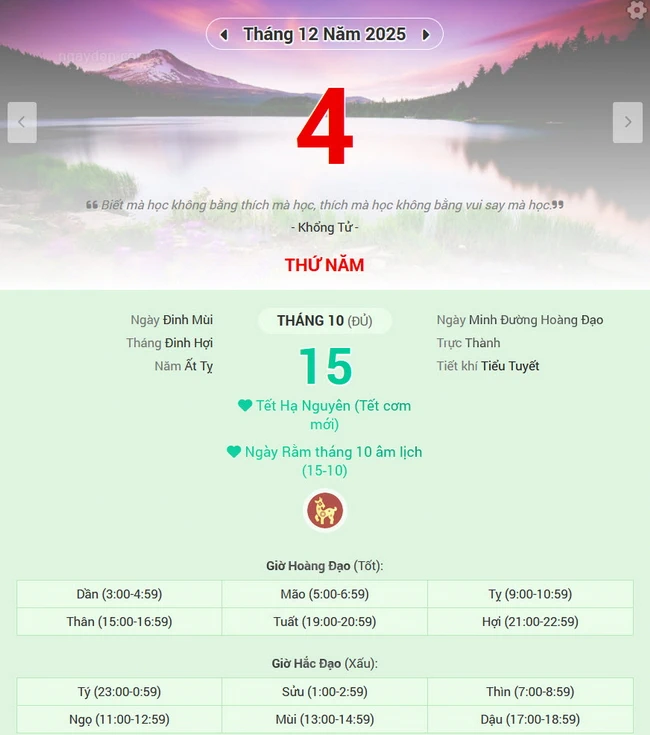 Bữa nay thứ Năm 4-12-2025 là Rằm tháng Mười năm Ất Tỵ.