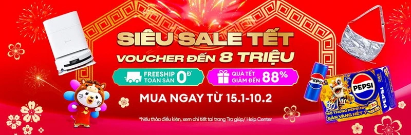 Lazada Việt Nam ngày 12-1-2026 cho biết: Đón mùa mua sắm cao điểm mừng Tết Bính Ngọ 2026, sàn thương mại điện tử Lazada Việt Nam chính thức khởi động chiến dịch “Siêu Sale Tết” từ ngày 15-1 đến 10-2-2026. Với thời gian triển khai dài và loạt ưu đãi nổi bật như giảm giá đến 88%, voucher lên đến 8 triệu đồng, trợ giá đến 8 triệu đồng cùng freeship toàn sàn, chiến dịch mang đến cho người tiêu dùng Việt cơ hội chủ động lên kế hoạch mua sắm sớm, tối ưu chi tiêu cho một mùa Tết trọn vẹn trong bối cảnh nhịp sống ngày càng bận rộn.