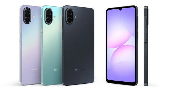 Smartphone Samsung Galaxy A07 5G mới đã được mở bán tại các cửa hàng bán lẻ trên toàn quốc với mức giá 4.390.000 đồng cho phiên bản RAM 4GB + ROM 128GB. Có ba tùy chọn màu sắc: Đen Bóng Đêm, Xanh Ngọc Bích và Tím Ngân Hà.