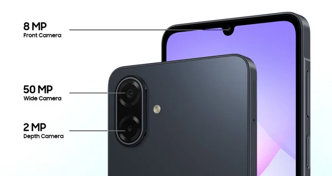 Hệ thống camera phía sau dual-camera gồm camera chính góc rộng 50MP và camera đo chiều sâu 2MP. Hệ thống xử lý hình ảnh tiên tiến tái tạo chi tiết sắc nét, cân bằng tốt giữa vùng sáng và vùng tối, giúp hình ảnh hiển thị rõ ràng trong nhiều điều kiện chụp khác nhau, kể cả khi phóng to hoặc cắt ảnh mà không lo mất nét. Camera selfie 8MP ghi lại chi tiết tự nhiên với độ nhiễu tối thiểu, mang đến hình ảnh sắc nét và rõ ràng hơn.