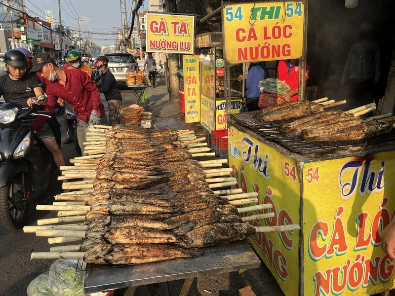 Khu bán cá lóc nướng trên đường Tân Kỳ – Tân Qúy (TP.HCM). (Nguồn: Internet. Thanks).